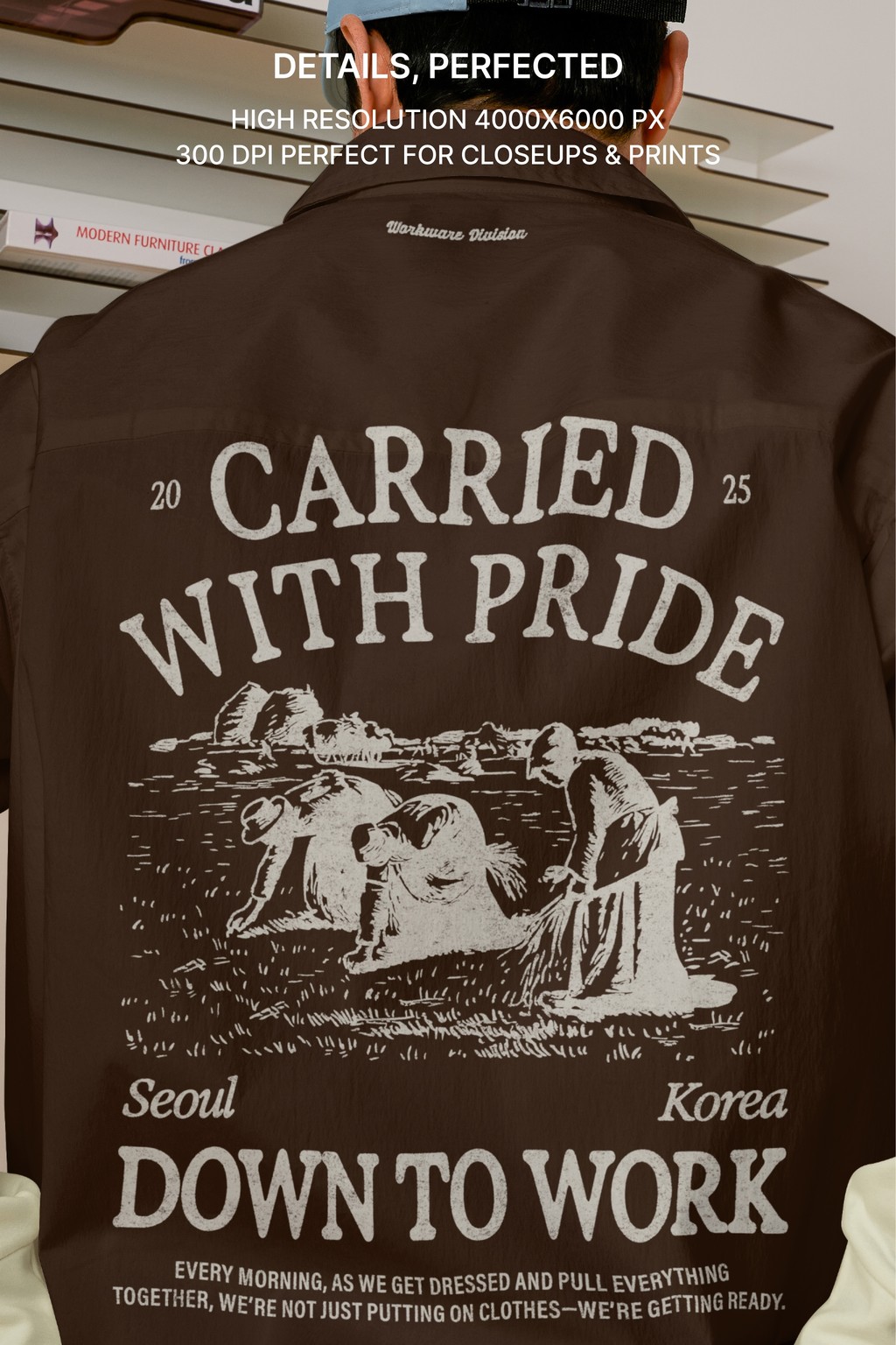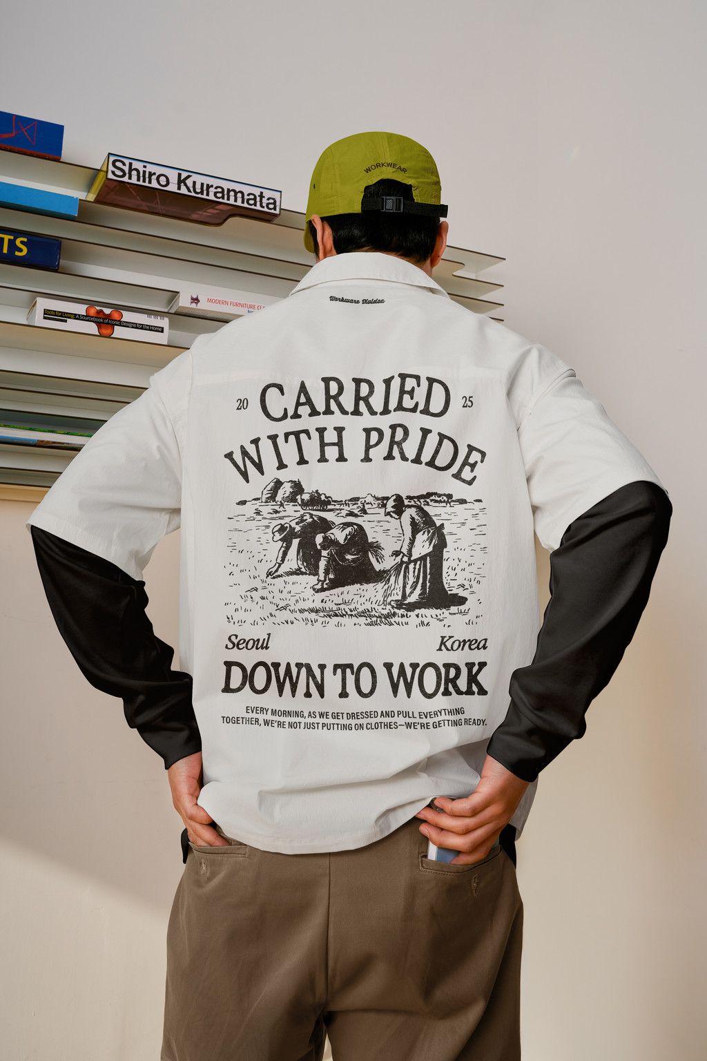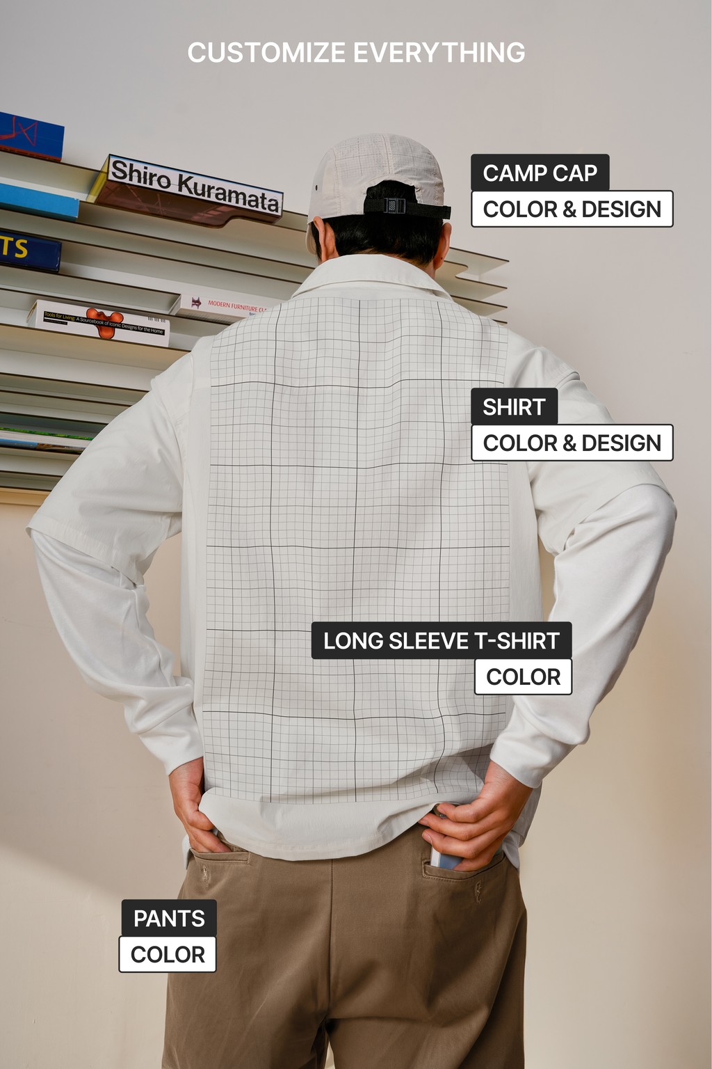This S#2 DTW Shirt 01 Mockup is available as a layered PSD file and is easy to customize. You can insert your shirt design and camp cap design through the embedded Smart Object and adjust the colors of the long-sleeve t-shirt and the pants