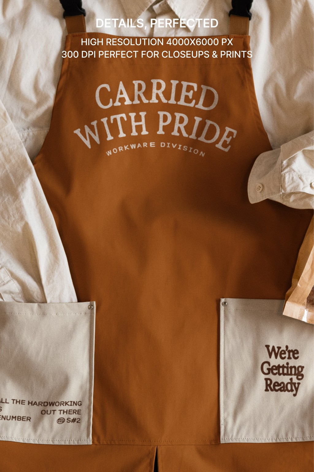 This S#2 DTW Apron Mockup is available as a layered PSD file and is easy to customize. You can insert your apron design and apron pocket design through the embedded Smart Object and adjust the colors of the shoulder straps.