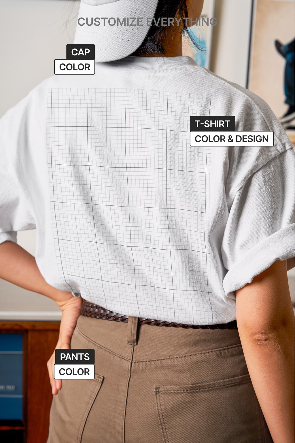 This S#2 DTW T-Shirt 08 Mockup is available as a layered PSD file and is easy to customize. You can insert your t-shirt design through the embedded Smart Object and adjust the colors of the pants and cap.