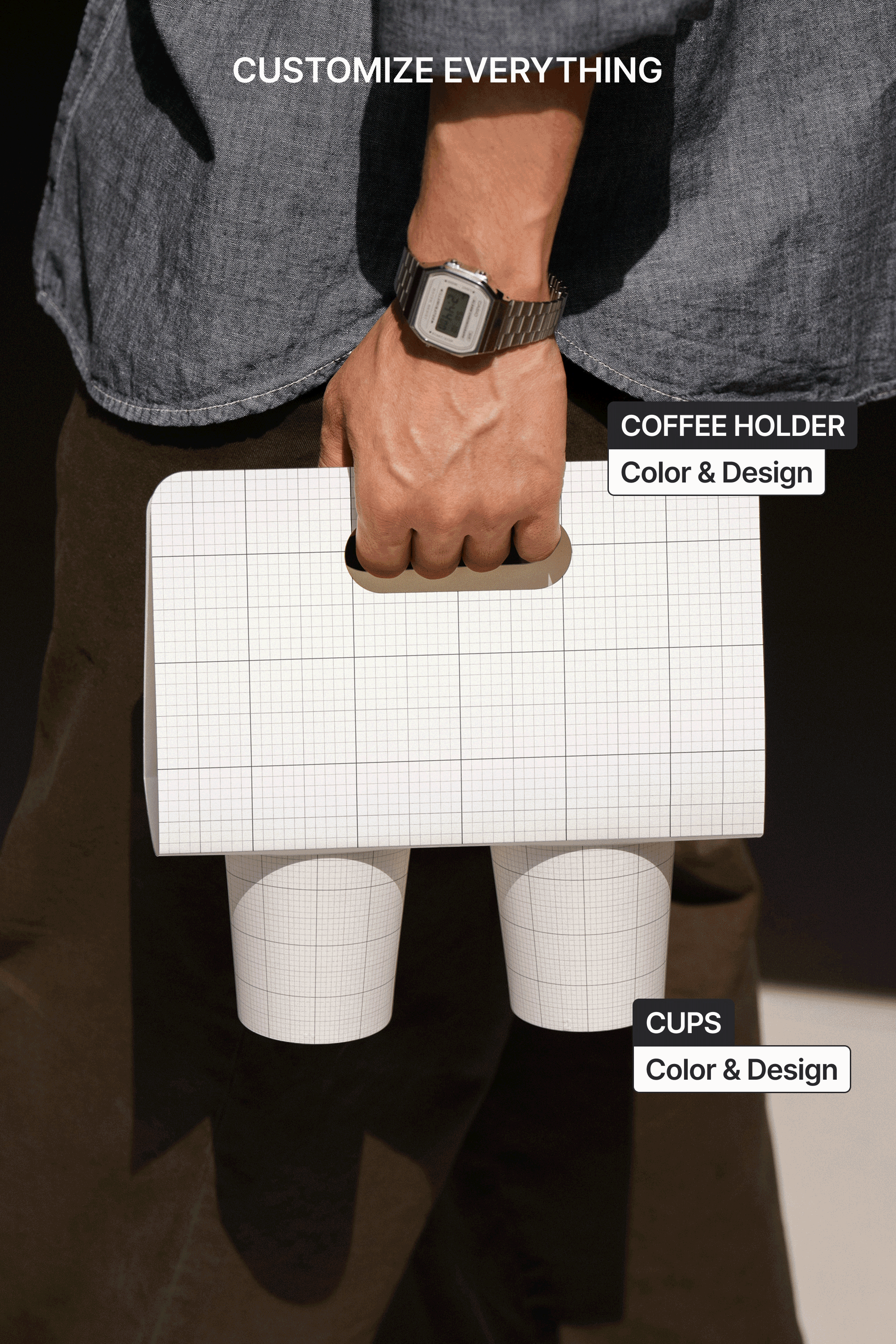 This S#4 FYB Coffee Holder 02 Mockup is available as a layered PSD file and is easy to customize. You can insert your coffee holder design and cup design through the embedded Smart Object and adjust the color.