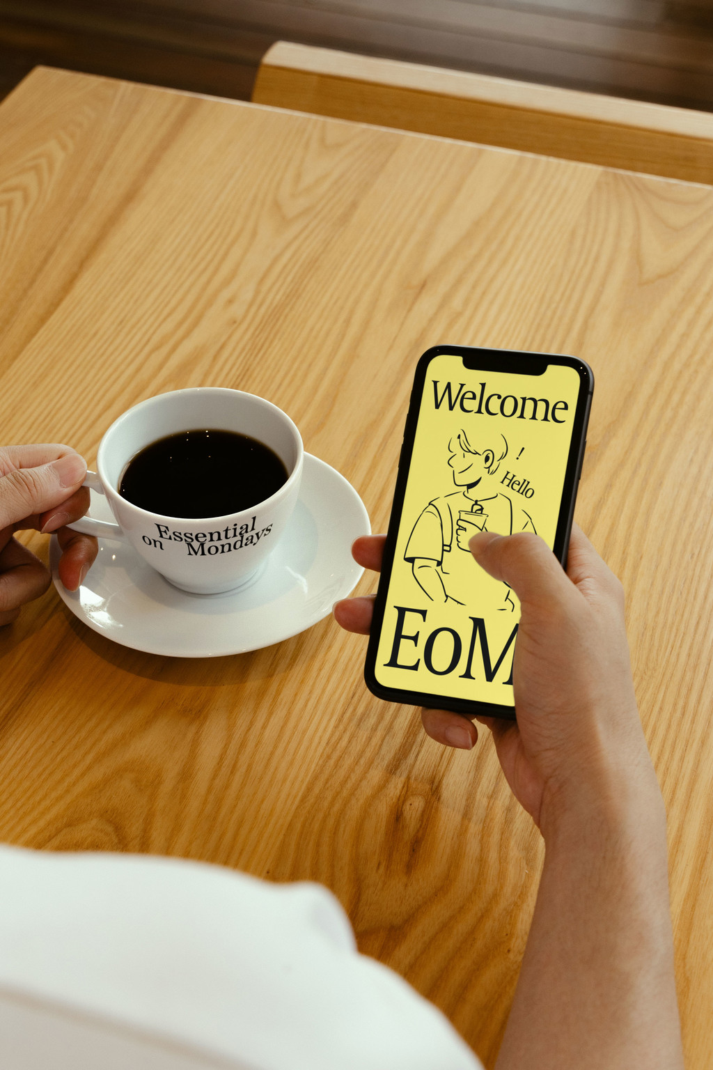 This S#1 EoM iPhone Mockup is available as a layered PSD file and is easy to customize. You can insert your iPhone design and cup design through the embedded Smart Object.