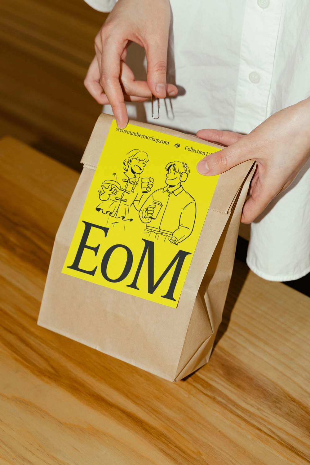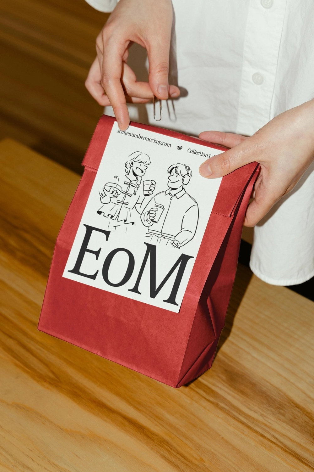 This S#1 EoM Takeaway Bag 01 Mockup is available as a layered PSD file and is easy to customize. You can insert your design through the embedded Smart Object and adjust the paper color and takeaway bag color.